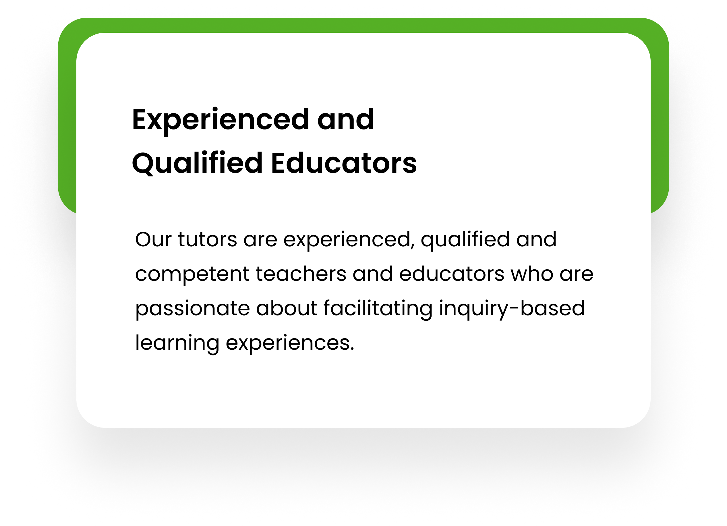 Our tutors are experienced, qualified and competent teachers and educators who are passionate about facilitating inquiry-based learning experiences.