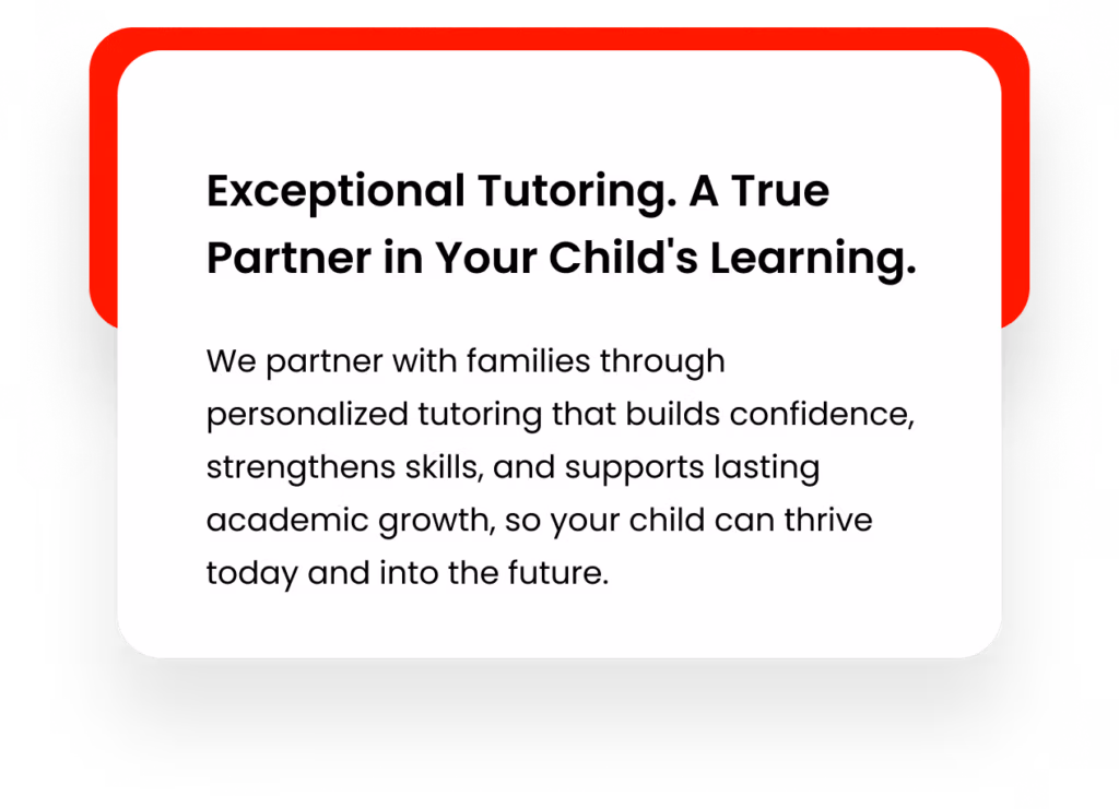 We partner with families through personalized tutoring that builds confidence, strengthens skills, and supports lasting academic growth, so your child can thrive today and into the future.